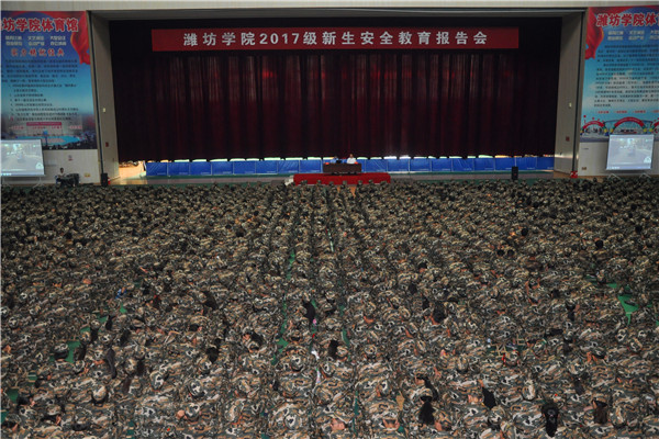 报告会分为安全课和实战教学演习两大部分,其中安全课又分为防邪教常识、反信息诈骗常识、交通安全常识、消防安全常识等四项,分别邀请潍坊市公安局国保支队三大队大队长王国臣、潍坊市公安局反信息诈骗中心民警周鹏、高新区公安分局交警大队法制中队民警李凯、潍坊市消防支队宣传中心参谋窦守钊等四位同志,以视频和图片等形式,为新生作了教育报告,内容生动直观,使同学们受益匪浅。