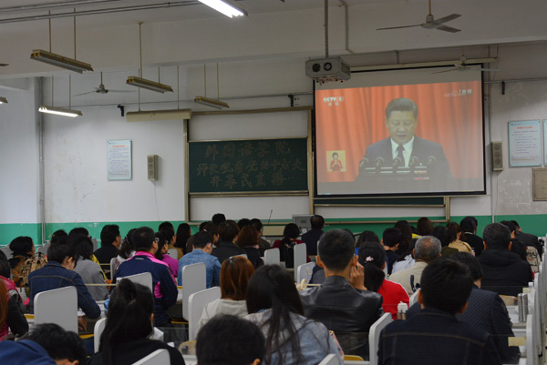 本网讯 10月18日上午9时,举世瞩目的中国共产党第十九次全国代表大会在北京人民大会堂隆重开幕。习近平同志代表十八届中央委员会向十九大作报告。我校广大师生员工对党的十九大密切关注,纷纷通过电视、互联网、广播等媒体收听收看十九大开幕式盛况。