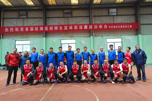 本网讯 11月16日下午,中共潍坊市委高校工委主办、我校工会和体育学院承办的首届驻潍高校师生篮球联谊赛在我校风雨球场举办。潍坊工商职业学院师生代表队与我校师生代表队进行了比赛,我校代表队双双胜出,取得晋级下一轮比赛资格。两队发扬“友谊第一、比赛第二”的精神,赛出了风格,加强了交流,增进了感情,展现了高校教师和青年大学生良好的精神面貌和奋进姿态。副校长王清明观看了比赛。