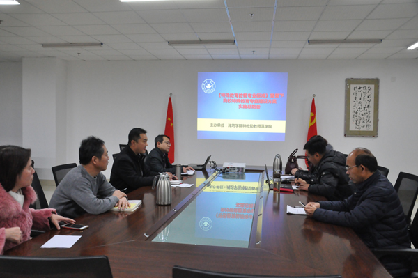 本网讯 12月13日,特教幼教师范学院召开《特殊教育教师专业标准》背景下特殊教育专业建设方案实施总结会。特教幼教师范学院院长梁纪恒以及部分特殊教育骨干教师参加了总结会。
