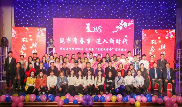 此次晚会也是由潍坊学院校友、外国语学院毕业生刘海云女士发起的“英迈儿童英语奖学金”首发仪式。晚会上表彰了外国语学院10名品学兼优的优秀学子。