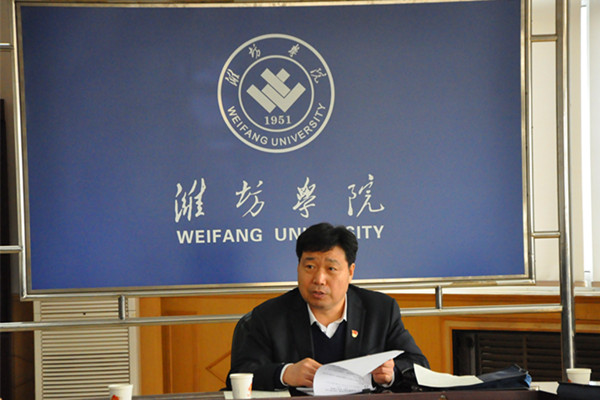 本网讯 1月17日上午,中国共产党潍坊学院第三次代表大会预备会议各代表团召集人会议在办公楼五楼东会议室举行。副校长王清明主持会议。