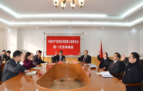 会议讨论并通过了第三届党委第一次全体会议选举办法,推选、通过了监票人,指定了计票人,以无记名投票的方式选举孙文亮同志为中国共产党潍坊学院第三届委员会书记,冯滨鲁同志、王清明同志为副书记。