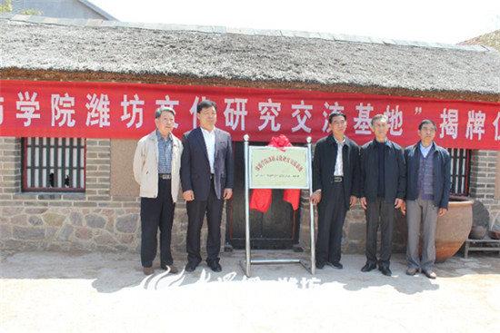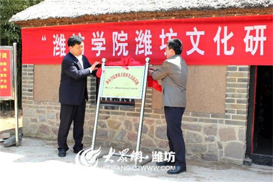 (通讯员 戴建民 张克云)5月9日上午,潍坊学院潍坊文化研究交流基地挂牌启动仪式,在中共一大代表王尽美故乡诸城市枳沟镇大北杏村举行。出席启动仪式的有潍坊学院党委副书记王清明,潍坊市政协常委、科教文卫体委副主任张崇高,诸城市政协副主席张海轶,枳沟镇党委、政府负责人,潍坊学院老教授、老专家代表等。