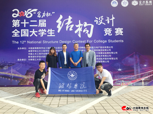 11月8日~11日,由中国高等教育学会工程教育专业委员会、高等学校土木工程学科专业指导委员会、中国土木工程学会教育工作委员会、教育部科学技术委员会环境与土木水利学部联合主办的,第十二届全国大学生结构设计竞赛在华南理工大学举行。经过四天紧张激烈的角逐,由潍坊学院建筑工程学院2015级本科生王方方、尹智璇、姜文翰三名同学组成的代表队,在指导老师的带领下成功斩获二等奖,成绩排名位居山东省参赛高校首位。