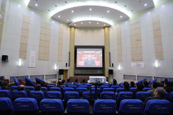 本网讯 壮阔山河四十年,一路改革再出发。12月18日上午10时,庆祝改革开放40周年大会在人民大会堂举行。中共中央总书记、国家主席、中央军委主席习近平出席大会并发表重要讲话。学校领导孙文亮、冯滨鲁、王清明、丁子信、马茜华、朱猷武、赵光强、王旭升及机关各部处人员在行政楼一楼报告厅收看大会实况,认真学习领会习近平总书记的重要讲话精神,共同感受祖国强劲的脉搏,共同畅想祖国更加美好的明天。