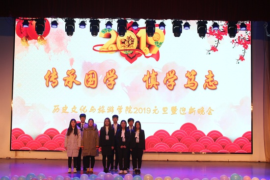 本网讯 12月19日晚7点,历史文化与旅游学院在图书馆报告厅举行以“传承国学,慎学笃志”为主题的2019元旦暨迎新晚会。