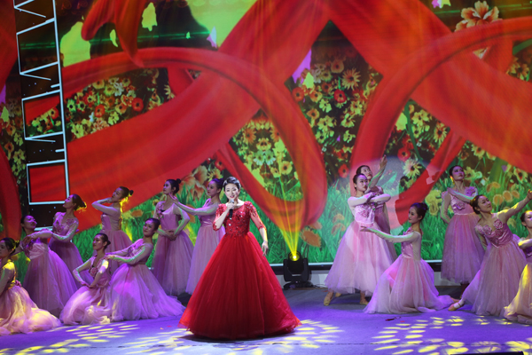 《水墨舞韵》以水袖舞开场,丹青水墨蕴含自由灵动、游刃有余的中国传统审美精神,展示出现代人对从心所欲而不逾矩的挥洒自如的向往;《信念》用生动的舞台剧展现了鸡毛信的故事,在那段光荣的岁月中,在那个特殊的战场上,无数的革命英雄用坚定的信念创造着胜利的奇迹,用坚定的信仰谱写了历史的传奇;《老师,我想你》采用对白与歌唱的表现手法,以姜述凤老师为原型诠释了人民教师“春蚕到死丝方尽,蜡炬成灰泪始干”的精神内涵;《春天的故事》《打起手鼓唱起歌》《在那桃花盛开的地方》《江山》《我和我的祖国》用歌曲联唱的形式感悟了改革开放四十年激情的岁月;《新绣荷包》用少数民族的歌声与风情,热情地展示着中华民族自信的力量以及改革开放给人们带来的幸福,精彩的演出给现场观众奉献了一场又美又燃的视听盛宴。