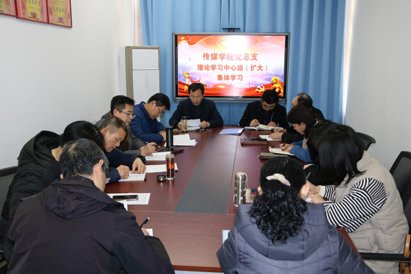 本网讯 2月28日下午,传媒学院党总支在7103教室召开党总支理论学习中心组(扩大)集体学习会,专题学习《中共中央关于加强党的政治建设的意见》。学习会由党总支书记卢运山主持。党总支委员、各党支部委员参加。