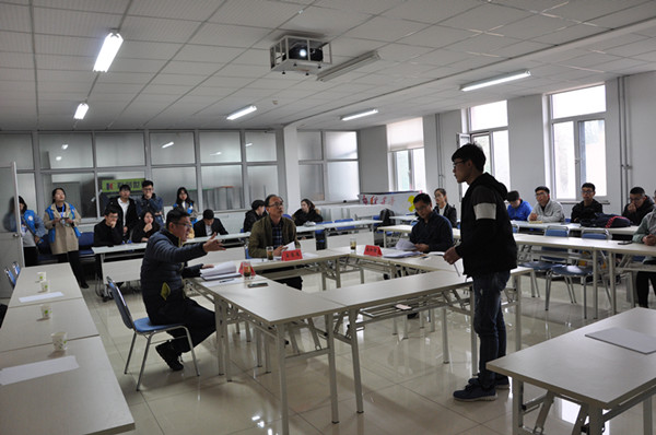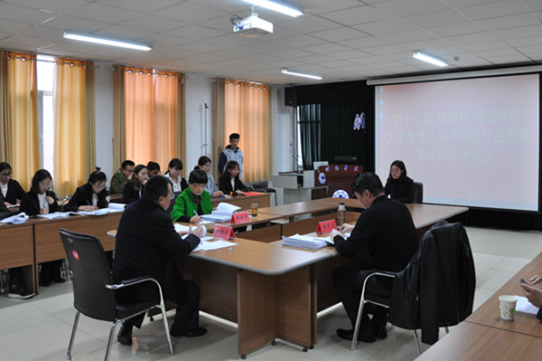 本网讯 3月20日下午,我校第十六届“挑战杯”大学生课外学术科技作品竞赛校级重点项目评审会在大学生创业孵化基地二楼和三楼多功能厅举行。本次评审会邀请王长春、赵加强、杜德、王恒升、魏晓笛和韩学志老师担任评委,进入决赛的30个项目团队成员、指导教师和所在学院团总支负责同志参加了本次评审会。本次评审会共有14个理工类项目和16个文史类项目,分为项目陈述和评委评审两个环节。