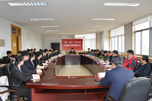 本网讯 4月9日,学校在行政楼五楼东会议室举办“相伴,同行”学生代表与职能部门面对面座谈会,党委副书记王清明出席会议,办公室、宣传部、团委等12个职能部门的负责同志,25名学生代表参加会议。会议由团委负责同志主持。