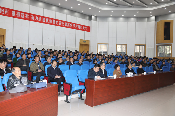 本网讯 4月11日,学校在闻韶楼报告厅召开党委理论学习中心组(扩大)学习会,专题学习习近平总书记在学校思想政治理论课教师座谈会上的重要讲话精神,学习会邀请了座谈会参加者、我校杰出校友、我校马克思主义学院名誉院长、南开大学逄锦聚教授作辅导报告。学校党委书记孙文亮,党委副书记、校长冯滨鲁,党委委员马茜华、赵光强、王旭升出席学习会。