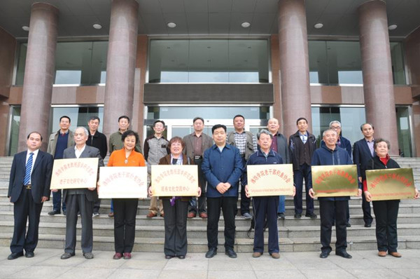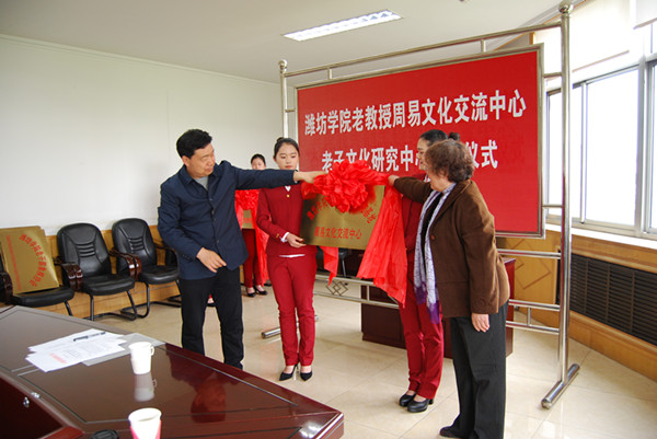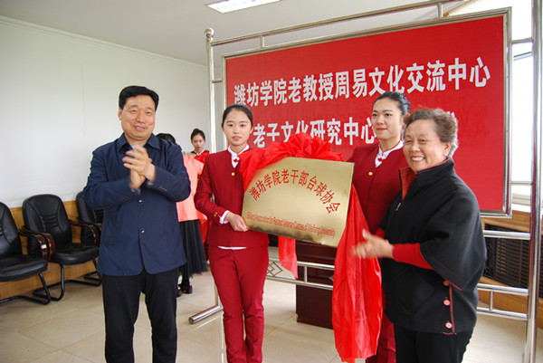 本网讯 4月30日,“潍坊学院老教授国学研究基地·周易文化交流中心、老子文化研究中心”,以及“潍坊学院老干部象棋协会、钓鱼协会、台球协会、扑克协会”揭牌仪式在学校行政楼五楼东会议室举行。学校党委副书记王清明分别与各中心、协会负责人揭牌,学校离退休工作处负责同志主持仪式。