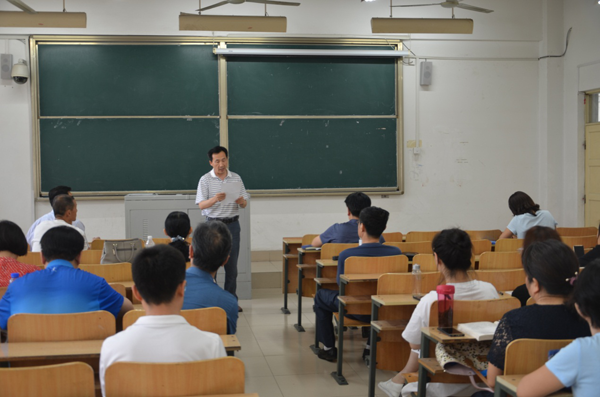 本网讯 6月13日下午,传媒学院党总支召开全体教师会议,认真传达学习习近平总书记在“不忘初心、牢记使命”主题教育工作会议上的重要讲话精神和省委书记刘家义在山东省“不忘初心、牢记使命”主题教育工作会议上的讲话精神。党总支书记卢运山主持会议。