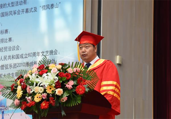 王清明以“拼出一番新天地”为题,寄语毕业生。他说,拼出一番新天地,是时代赋予你们的光荣使命,是母校给予你们的殷切希望,是你们自我实现的价值追求。他对全体毕业生提出四点希望。第一,必须坚定远大的理想。要坚定信念,脚踏实地,坚守家国情怀,将个人梦与家国梦熔融合一,在实现人生价值中为社会、为国家作出应有的贡献,争作担当民族复兴大任的时代接班人。第二,必须锤炼过硬本领。要坚持学习,把学习当成是一种追求、一种爱好、一种健康的生活方式;要勤于实践、敢于创新、善于创造,在破解难题中增长才干、练就本领,以真才实学促进自身成长、服务国家社会。第三,必须敢于担当尽责。要知责明责,敢于担责,勇于尽责,要实践“工匠精神”,努力成长为可堪大用、能担重任的社会栋梁。第四,必须坚持不懈奋斗。要明白自己的价值所在;要坚守做人底线,坚持人格操守,涵养高尚品德;要学会面对挫折,学会在挫折中总结经验;要热爱生活,努力追求内心的恬静,用心善待身边每一个人。