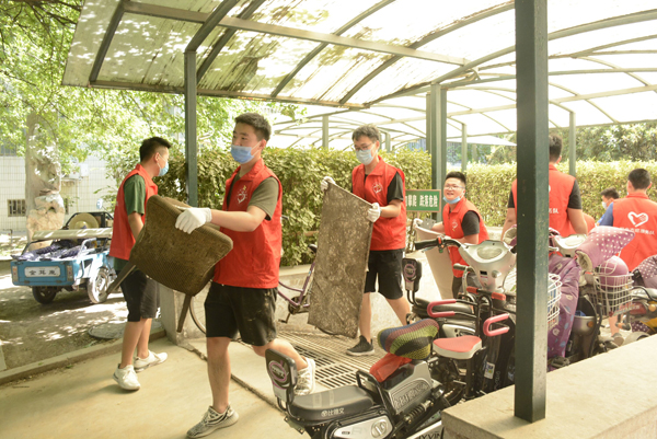 小区工作人员手中接过白手套和工具后,大家积极投入到具体的工作中去。3个多小时的清理工作让所有人都汗如雨下,但是没有一个人喊苦喊累,看着堆积如山的废旧物品,看着干净的路面和绿化林,每个人都露出开心的笑容。
