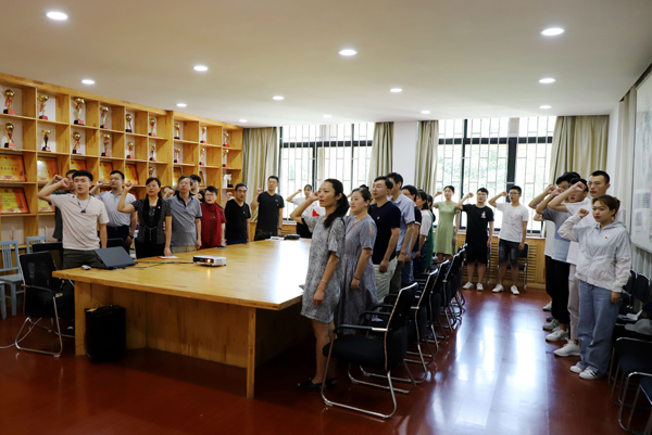 学习之前,学院党总支书记于建华领誓,党员面向党旗庄严宣誓,重温入党誓词,喜庆党的生日。师生党员同唱《没有共产党就没有新中国》《我和我的祖国》等红色经典歌曲,传承红色基因,祝福伟大祖国,现场气氛庄重热烈。