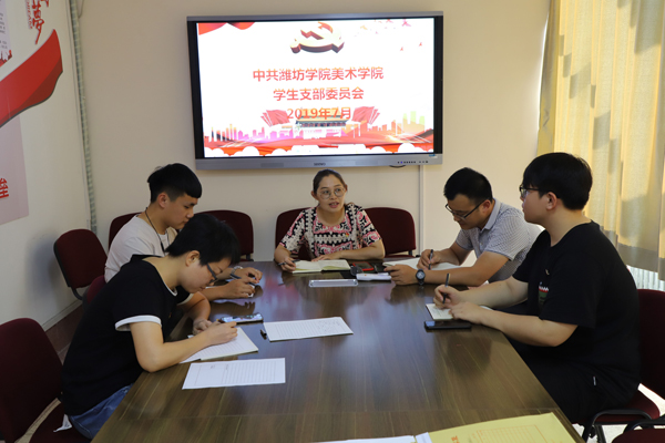 本网讯 7月1日,美术学院学生党支部在党员活动室召开新一届支部委员第二次会议,支部书记张芳芳主持,支部委员全体参加。