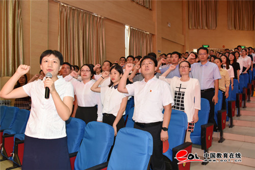 大会在庄严地奏唱国歌声中拉开帷幕。质朴的发言,热烈的掌声,庄严的宣誓,殷切的希望……整场活动洋溢着师道的传承、文脉的赓续。