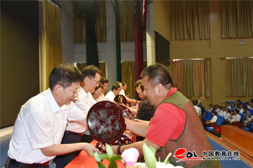 大会对2019年获得市级以上荣誉称号的教师进行了表彰。为37名退休教职工颁发了纪念品。