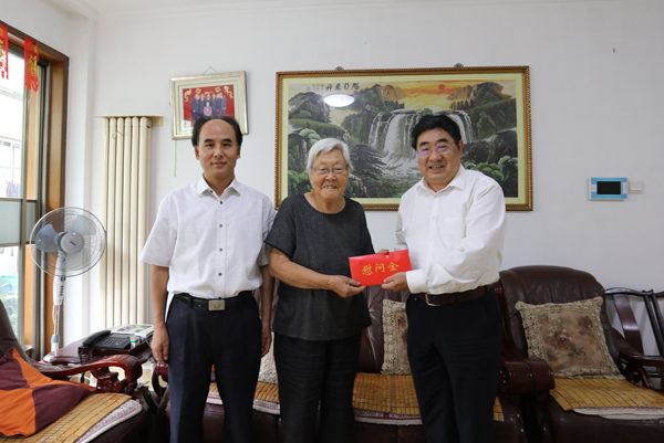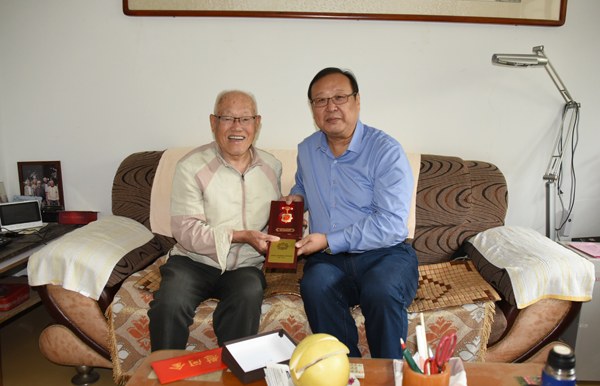 在相关部门负责同志的陪同下,学校领导给老干部们送去了慰问品。把中共中央、国务院、中央军委颁发的“庆祝中华人民共和国成立70周年”纪念章送到离休干部手中,同时为每位离休干部送上慰问金。在庆祝中华人民共和国成立70周年前夕颁发纪念章,是新中国成立70周年系列庆祝活动的重要组成部分,学校有14名离休干部获此殊荣。