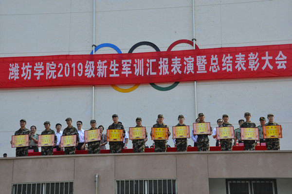 会上,党委书记孙文亮向承训部队赠送锦旗。军训团政委李学军宣读新生军训团表彰决定,与会领导为获奖集体和个人颁奖。2019级新生康文馨代表参训学生发言。