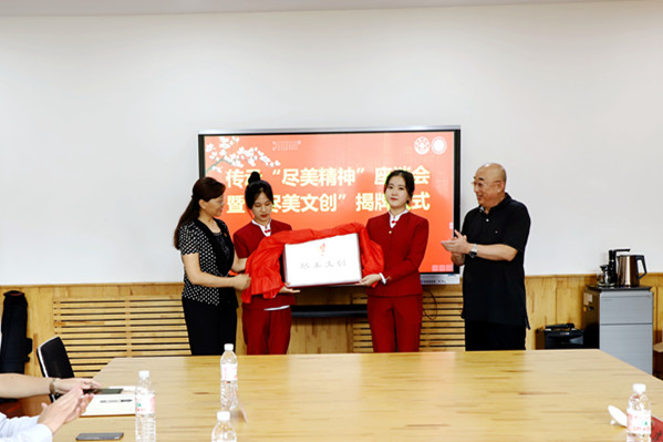 学院学生党支部副书记、团总支书记江浩浩汇报了“尽美文创”团队的基本情况、团队成立以来的工作进展和富有代表性的作品。王军和于建华共同为“尽美文创”团队揭牌。学院书法博士刘兆彬现场创作了两幅作品,一是王尽美同志的诗:沉浮谁主问苍茫,古往今来一战场。潍水泥沙挟入海,铮铮乔有看沧桑及;二是王氏家训:精忠报国。王军用激动的声音向同学们解读了爷爷诗作的创作背景。当时,王尽美同志即将赴济南求学,山河破碎满目疮痍,中国最底层的人民艰难的生活困境,激发了他救民于水火的愤慨和深深的爱国热情,这首诗展现了爷爷作为一名热血青年立志报国的远大抱负与炽热情怀。