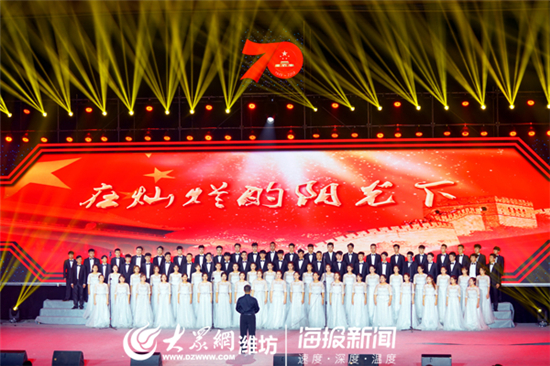 晚会共分为三个乐章,通过歌曲、舞蹈、朗诵等节目形式,运用灯光、音响等舞台效果,歌颂新中国70年翻天覆地的变化,抒发对祖国的挚爱之情,展现潍院师生与国家同呼吸、共命运,不忘初心、牢记使命,担当作为、砥砺奋进,推动高等教育事业发展的豪情壮志。