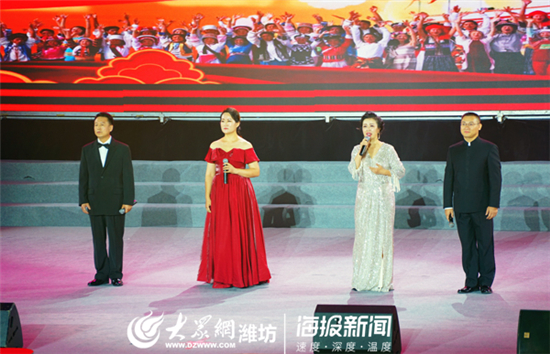 晚会在民乐合奏歌曲《我的祖国》中拉开帷幕,潍坊学院音乐学院合唱团用饱含深情的演唱,表达了对祖国母亲的无限热爱;诗朗诵《可爱的中国》抒发了共产党员的赤子情怀和远大抱负,勾起了在场观众对革命先烈的深切缅怀之情;歌曲《把一切献给党》表达了一名共产党员终身入党的坚定决心;《北京颂歌》带着历史的温度,表达了人们最醇厚的革命热情和最纯真的红色信仰;同学们以激荡而充满力量的舞姿在《红旗颂》中展现了不屈不挠和勇往直前的民族精神;老教授合唱团《天路》表达了退休老教师对祖国的深切情意;《不忘初心》《祖国万岁》《在灿烂的阳光下》一曲曲红色歌曲唱响了青年一代筑梦未来的主旋律,充分表达了潍坊学院师生爱党爱国爱校的家国情怀;《追寻》《春天的故事》《红旗飘飘》《好儿好女好江山》《今天是你的生日,我的中国》等一首首熟悉的旋律赢得了观众的阵阵欢呼和喝彩声,现场舞动的国旗和闪光灯汇聚成欢乐的海洋,将晚会的气氛推向了高潮。