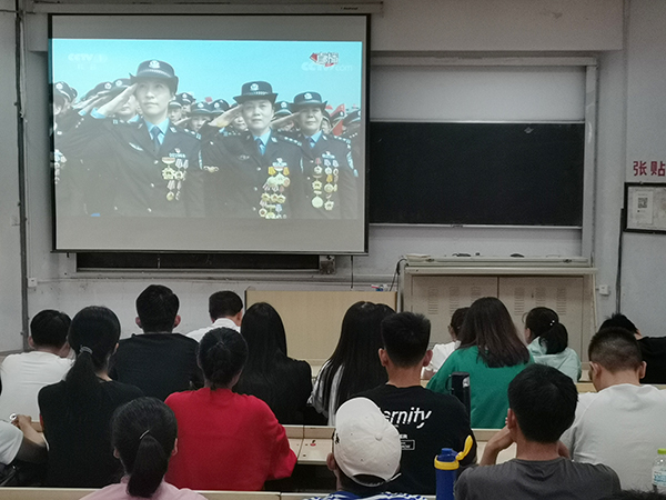 法学院学工办主任王秀慧说,当嘹亮的国歌响起,当五星红旗高高飘扬在湛蓝的天空,当共和国的战士们迈着铿锵有力的步伐经过天安门广场,当精良的武器装备一一展现在我们面前,我的心情无比激动,作为一名中国人,作为一名新时代的辅导员老师,发自肺腑地为伟大的祖国感到骄傲和自豪!青年兴则国家兴,青年强则国家强,不忘初心、牢记使命,中华民族伟大复兴的中国梦一定会在一代代青年的接力奋斗中实现!