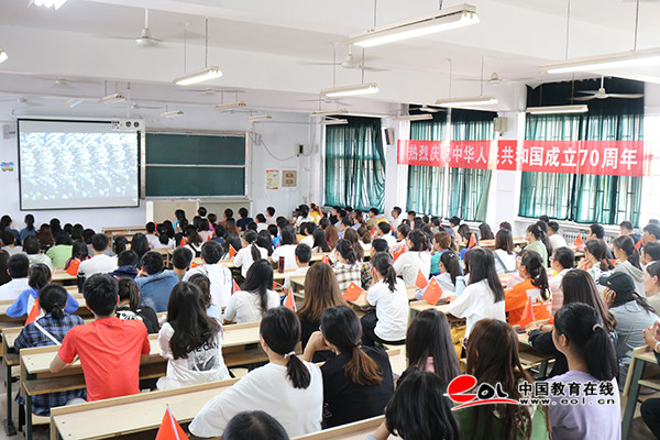 中国教育在线讯 10月1日上午10时,庆祝中华人民共和国成立70周年大会在北京天安门广场隆重举行。中共中央总书记、国家主席、中央军委主席习近平发表重要讲话并检阅部队。潍坊学院组织师生通过多种途径、多种形式收看大会盛况,共同聆听习近平总书记的重要讲话,回顾新中国成立70周年来走过的伟大历程,为祖国的繁荣昌盛而骄傲欢呼。