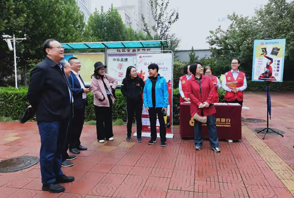 本网讯 10月10日,财务处党支部与国际交流合作处党支部全体党员来到翰林社区,开展了以“普及金融知识、惠及百姓生活”为主题的社区服务活动,该活动还邀请农商银行工作人员参与,现场通过悬挂横幅标语,摆放宣传展板,设置咨询点等多种方式向社区居民普及金融知识,党员们积极为社区居民进行了财务金融知识的普及与宣传,提醒居民防范电信诈骗,以保障自身的财产安全。校长冯滨鲁以普通党员身份参加了活动。