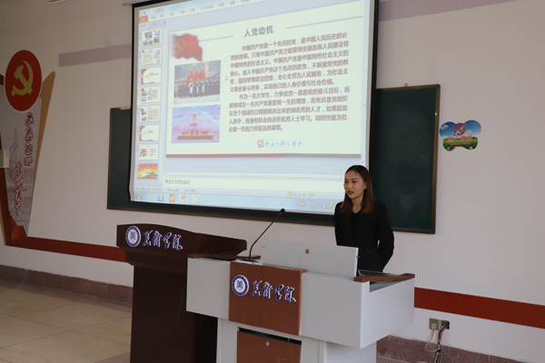 入党积极分子柳洪建说:“感谢支部给大家提供了一个展示自我的平台。本次答辩会不仅是入党积极分子展示自我和互相学习的机会,也是一次向本期新入党积极分子成果展示的平台,更是一次积极分子与党员交流的机会。同时,通过展示也更加深刻的认识到了自己的优势和劣势所在,接下来我将进一步将理论和实践结合起来,将专业学习和党建学习结合起来,不断锻炼提高自己的党性修养、专业素养和综合素质等各方面的能力,真正实现从思想上、行动上同时入党。”