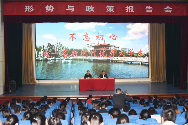 各学院党总支书记、分管学生工作负责人,马克思主义学院教师代表,办公室、宣传部、学生处、团委等部门全体人员,全体辅导员,学生代表听取了报告。