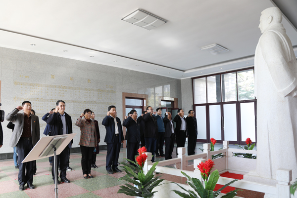 在王尽美纪念馆,孙文亮带领中心组成员面向王尽美塑像,鞠躬致敬,表达对革命先烈的深切怀念和崇高敬意;重温入党誓词,铭记初心使命。纪念馆共设四个展厅,分别陈列烈士革命斗争的史料、图片、遗物,部分党和国家领导人的题词,以及关于烈士的回忆文章与文艺作品等。王尽美同志在党的创建和早期革命活动中,做出了卓越贡献,他用短暂而又辉煌的一生诠释了革命大无畏精神和爱国主义精神。