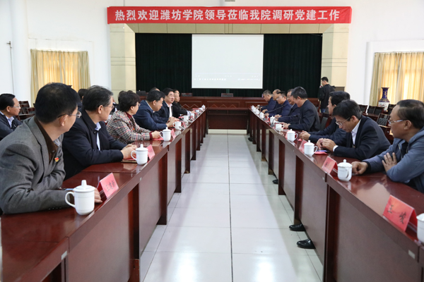 期间,中心组成员还到潍坊工商职业学院参观考察,在该院党委书记郑志松、院长王传旭,及学院领导班子成员陪同下观看了党建宣传展板,了解了潍坊工商职业学院的发展沿革和办学情况。孙文亮表示,要在两校党建合作的基础上,向更广更深的领域开展交流合作,为潍坊区域经济社会发展作出新的更大贡献。