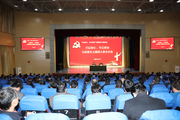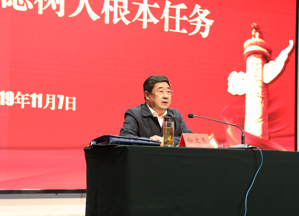就如何践行初心使命,落实好立德树人根本任务,孙文亮强调,一要把思想道德教育作为首要内容。要在坚定理想信念、弘扬爱国主义、敦养优秀品德上下功夫,培养学生奋斗精神,教育引导学生成为一个有大爱、大德、大情怀的人。二要把深化教育教学改革作为重要抓手。要聚焦教育教学的关键领域,推进思想政治理论课改革创新,推进创新创业教育改革,要用好信息化手段,加快推进教育信息化,大力提升学生综合素质。三要把建设高素质专业化教师队伍作为重要保障。落实立德树人根本任务,要加强师德师风建设,提高教师专业素质能力,要提升服务教师水平,建设一支师德高尚、业务精湛、结构合理、充满活力的高素质专业教师队伍。四要把健全“三全育人”工作格局作为重要支撑。落实立德树人根本任务,要把思想政治工作贯穿教育教学全过程,着力构建“三全育人”工作格局,不断提升人才培养的针对性和实效性。五要把坚持党对学校工作的全面领导作为根本保证。要全面贯彻党的教育方针,以全面从严治党为抓手,着力提升基层组织力,发挥党员积极性,不断提升立德树人实效。