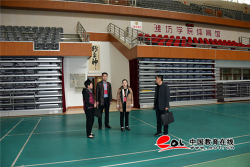 中国教育在线讯 11月12日,山东省教育厅专家组一行四人对潍坊学院体育工作进行现场考察评估。潍坊学院校长冯滨鲁,副校长丁子信、赵光强出席会议。