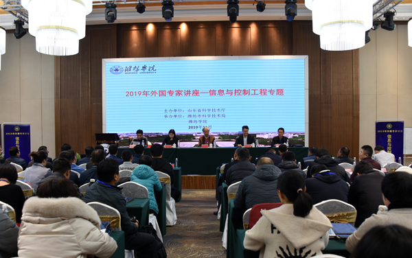 本网讯 11月22日,山东省2019年外国专家讲座—信息与控制工程专题在潍坊举行。此次讲座由山东省科学技术厅主办,潍坊市科学技术局、潍坊学院承办,是2019年山东省科技厅重点支持的外国专家系列讲座之一,也是潍坊学院第一次举办的、由外国专家主讲的科技讲座。国际信息与控制工程领域知名专家澳大利亚Zhihong Man教授受邀作学术前沿报告。