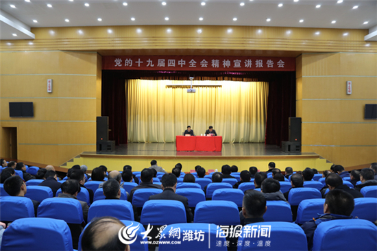 11月28日,潍坊学院举行党的十九届四中全会精神宣讲报告会,省委教育工委、市委宣讲团成员,潍坊学院党委书记孙文亮作首场报告。党委副书记王清明主持报告会,潍坊学院领导丁子信、马茜华、朱猷武、赵光强、王建新出席报告会。