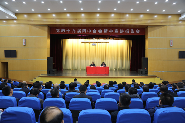本网讯 11月28日,学校举行党的十九届四中全会精神宣讲报告会,省委教育工委、市委宣讲团成员,校党委书记孙文亮作首场报告。党委副书记王清明主持报告会,校领导丁子信、马茜华、朱猷武、赵光强、王建新出席报告会。