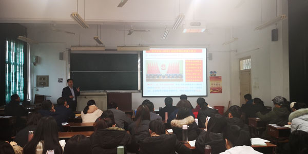 本网讯 12月4日,省教育工委党的十九届四中全会宣讲团成员、学校马克思主义学院教授吕学山,在致远楼为文学院师生党员宣讲党的十九届四中全会报告精神。