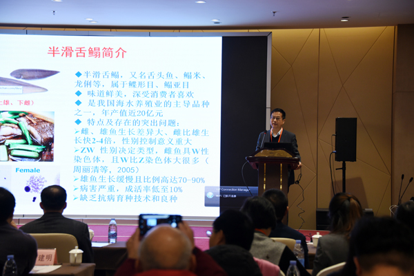 泰山学术论坛设施渔业健康养殖专题于15日-17日召开。本次论坛以产学研结合的多边技术交流为主。会上,陈松林研究员作了题为“半滑舌鳎分子性控与高产抗病良种选育”的报告;中国科学院海洋研究所李军研究员“循环水养殖水环境调控养殖技术”从养殖设施层面汇报了国内外循环水养殖系统的设计思考技术参数;中国科学院海洋研究所王雷研究员“基于组学大数据的精准水产养殖”报告从大数据云计算及人工智能方面,对养殖水产品的可溯源体系及未来精准水产养殖提出了大胆的判断和设想;中国海洋大学艾庆辉教授、中国海洋大学万敏教授、中国黄海水产研究所田永胜研究员、中国水产流通加工协会朱亚平副会长分别围绕自己研究领域中的现实问题、研究意义及成果进展作了前沿学术报告。论坛期间,部分专家学者、企业家代表分别对设施渔业领域前沿和关键技术热点进行深入探讨,就设施渔业健康养殖的产业动态及未来发展,以及企业运营过程中存在的问题进行了充分交流,并给出了宝贵建议。
