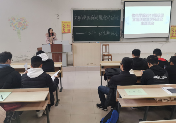 本网讯 为构建文明、和谐的学院环境,提升学生的文明素养和道德水平,引导同学们认真复习,备战期末考试, 12月18日,物理与光电工程学院各年级于明正楼5109教室,分别召开学风建设主题班会。班会由各年级辅导员主持,各年级全体同学参加。