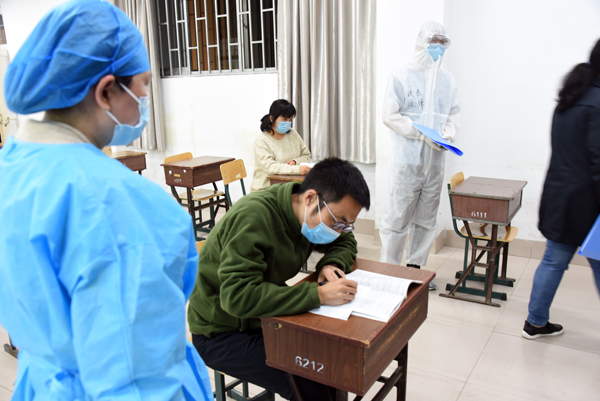 在宿舍楼前,学生相隔2米排队进入宿舍楼,依次模拟演练了体温测量、宿舍内学生体温自测异常的应急处置。该环节还对经定点医院发热门诊诊断,排除疑似或确诊新冠肺炎的发热学生,回校入住发热观察区休息治疗进行了周密安排。