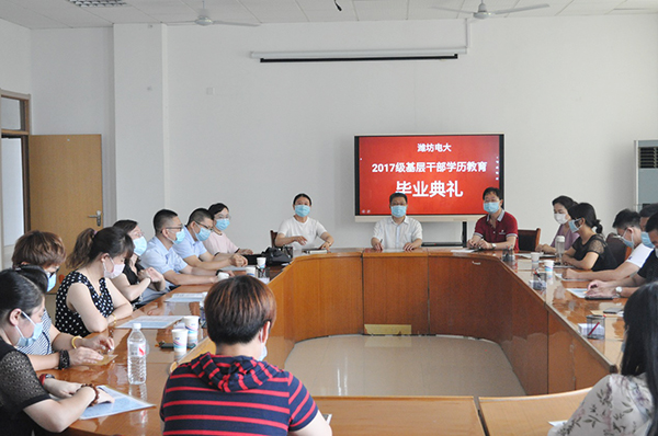 本网讯 7月17日,潍坊市农村和城市社区基层干部专科学历教育2017级毕业典礼,在我校继续教育学院会议室举行。典礼与省电大农村和城市社区基层干部专科学历教育2020届毕业典礼暨2019级开班式同步。继续教育学院班子成员、2017级班主任、16名学员代表参加了典礼。