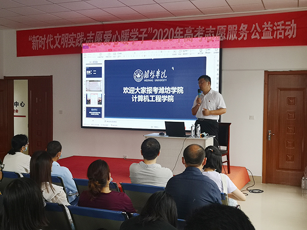 本网讯 7月18日上午,潍坊学院计算机工程学院、寒亭区文明办、寒亭街道等单位,在寒亭街道泰祥社区联合组织“新时代文明实践·志愿爱心暖学子”高考志愿服务公益活动。计算机工程学院老师及部分志愿者同学,寒亭区部分高考考生及家长、文明志愿者及新闻媒体记者100余人参加公益活动。