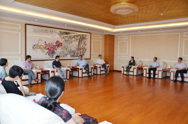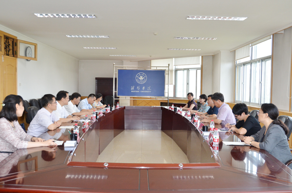本网讯 7月31日,国际著名植物分子生物学家邓兴旺教授一行6人来潍坊学院调研交流。校长冯滨鲁、副校长赵光强会见客人。邓兴旺教授一行与生物与农业工程学院部分教师代表进行座谈交流。