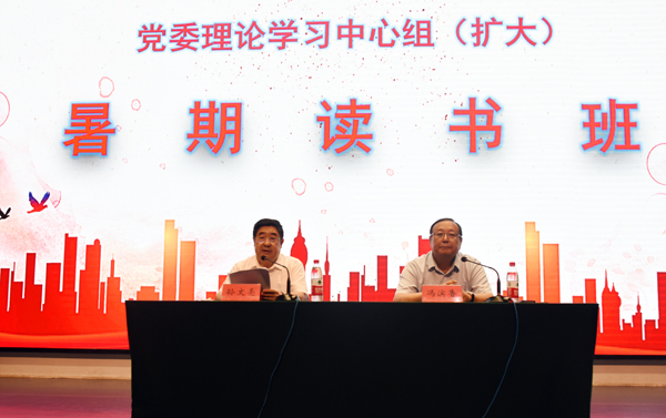 本网讯 8月26日,学校在图书馆报告厅举办2020年党委理论学习中心组(扩大)暑期读书班,深入学习《习近平谈治国理政》第三卷和习近平总书记关于教育的重要论述,为加快建成优势特色突出的高水平应用型大学、推动学校高质量发展提供坚强思想政治保障。