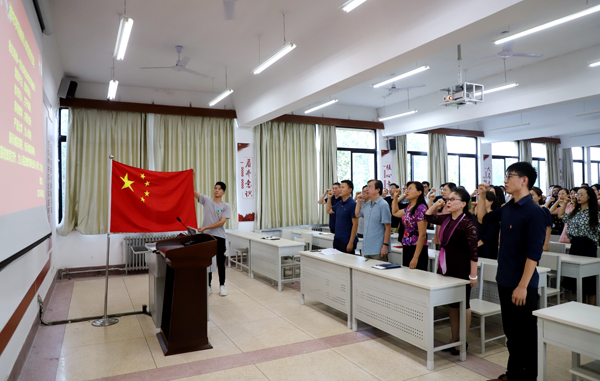 会议集体收看了习近平总书记9月9日给全国广大教师和教育工作者的重要寄语相关视频,一起观看了《“最美的你”2020 齐鲁最美教师颁奖典礼》,学习传达了学校2020年教师节表彰暨新教师入职宣誓仪式会议精神。全院教职工在教师代表王发富博士的带领下,面对国旗,右手举拳,重温潍坊学院教师入职宣誓誓词,表达忠诚党的教育事业,履行教师神圣职责的坚定决心。
